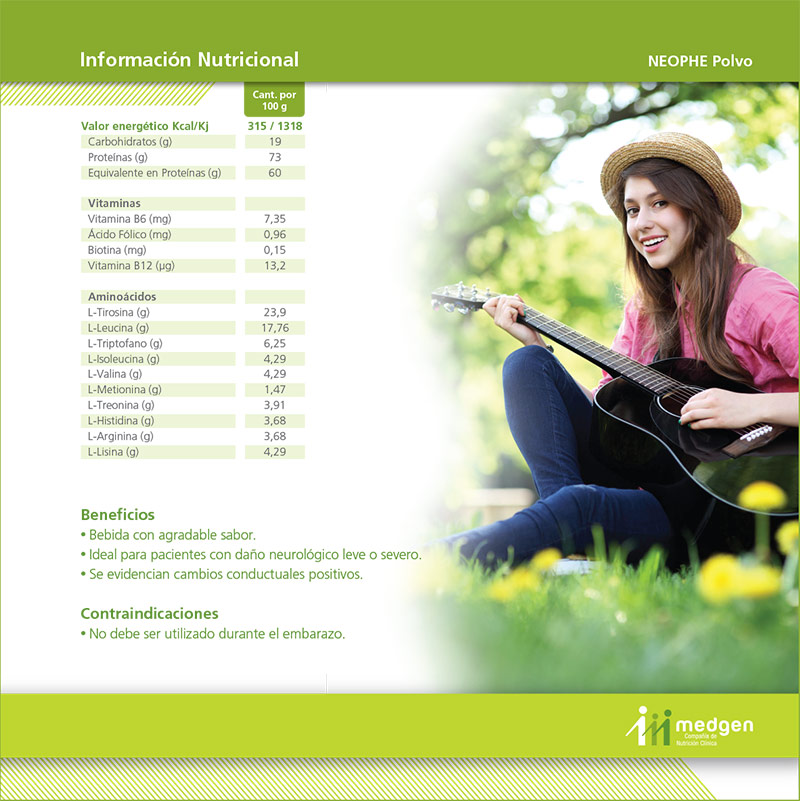 Aminoácidos neutros de cadena larga (LNAA) en polvo para el manejo dietario de pacientes con Fenilcetonuria.